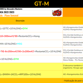 Não esquecer que os ritmos de referência para cada Grupo de Treino são individualizados e que em caso de discrepância entre o volume (kms) e o tempo (minutos) devem terminar o treino logo que um deles seja alcançado. Qualquer dúvida, não hesitem em dizê-lo!